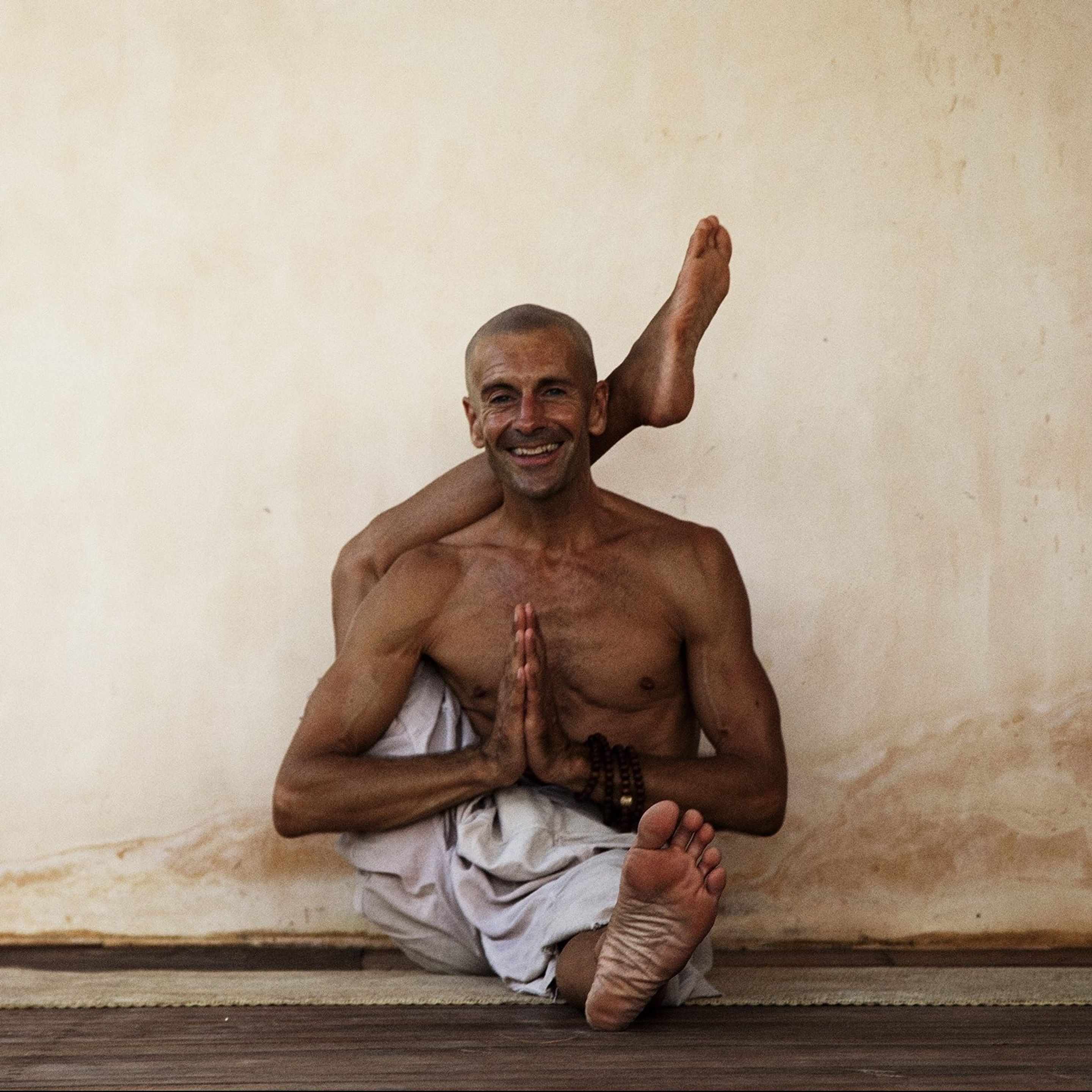 Traditionally trained, ie in following a master yogi, Mika was first initiated by Baptiste Marceau (son of the famous French mime artist) to the art of Ashtanga (a dynamic form of yoga originally called Korunta). This led him to follow the path of a Hindu Swami yogi for several years in the Himalayas, even dwelling in a cave in Gangotree in order to gain insight into a more traditional and meditative style. Later on he was invited by Sharon Gannon to follow the Jivamukti teachings in New York. These teachings and many yogic travels and study led him to develop his own very particular style.